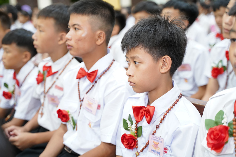 Sau phần giảng lễ, Đức cha Anphong đã cử hành nghi thức ban bí tích Thêm sức cho 185 em, trao ban Chúa Thánh Thần và các ân sủng của Ngài để giúp các em sống đời sống mới. Sau đó, lần lượt từng em đã tiến lên để ngài đặt tay cầu nguyện, xức dầu thánh và chúc bình an.