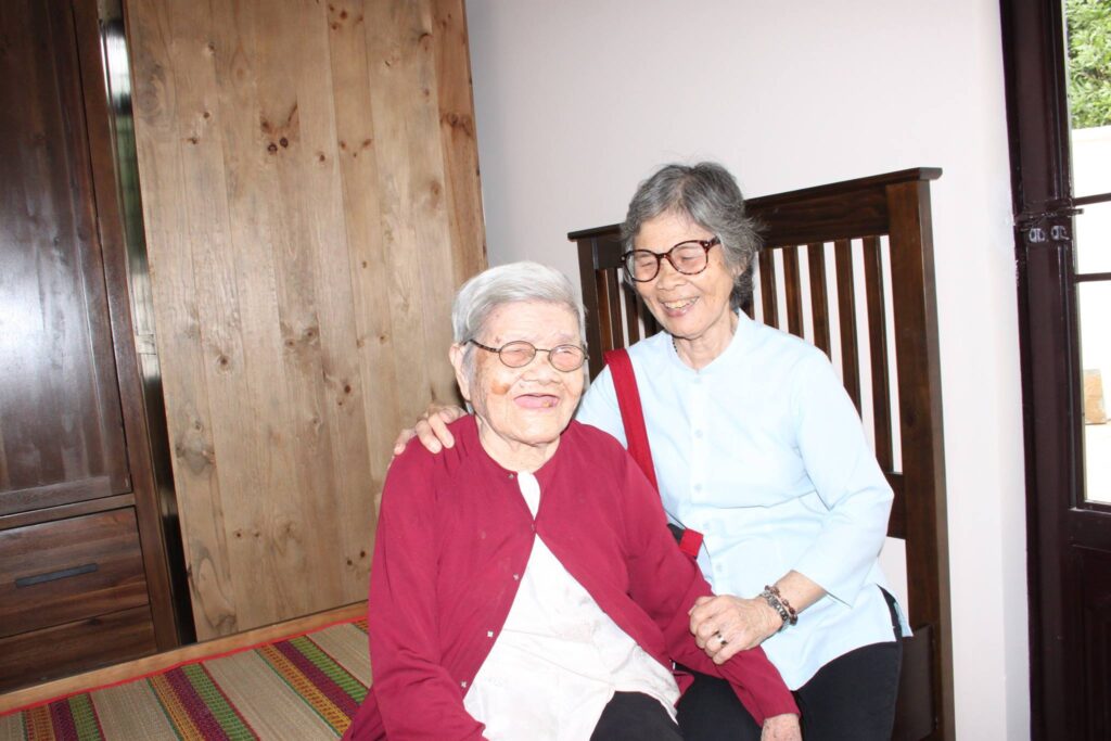 Bốn anh em chúng tôi bước vào viện dưỡng lão và cảm nhận đầu tiên của chúng tôi là bầu khí tĩnh mịch, trầm lắng, nhẹ nhàng và an bình. Tiến sâu vào trong các khu nhà ở và nhà bếp, chúng tôi bắt gặp hình ảnh các chị nhân viên đang nấu ăn và lau chùi, vệ sinh nhà cửa, phòng ốc… Gặp chúng tôi, các chị nhân viên vui mừng tiếp đón cùng với nụ cười tươi, những lời hỏi thăm và kể chuyện này nọ… được một lúc, các chị dẫn chúng tôi vào thăm các cụ đang đau bệnh nằm trên giường.